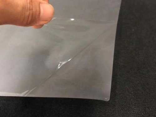 產(chǎn)品形態(tài):薄膜+PE,表面為霧面,熱貼合后呈透明的狀態(tài)。